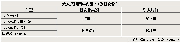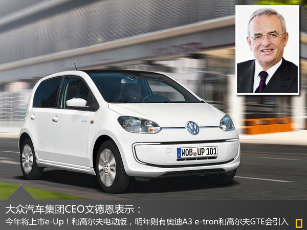 今年3月,大众集团在德国发布了全新高尔夫电动版车型。随着北京车展上一系列节能环保车型的发布,大众也将在未来1-2年内实现在华新能源市场的发力,包括高尔夫电动版在内的多款新车将陆续引入中国市场。对此大众汽车集团CEO文德恩表示:今年将引入e-Up!和高尔夫电动版两款纯电动车,而在2015年高尔夫GTE和奥迪A3 e-tron这两款插电混动新车也将在华上市。