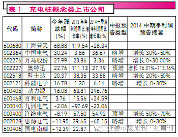 中期业绩预增的科陆电子,其业务存在于新能源及电动汽车充电领域。公司成功中标深圳建设的首批电动汽车充电站项目,为该充电站提供直流充电机和交流充电桩产品,产品在深圳大运会,会展中心和飞机场投入运行。北京本地充电桩概念股动力源,公司表示,已经具备了建立充电站的能力和持续研发的能力。
