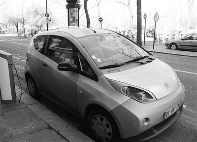 图为法国巴黎街头的“Autolib”正在充电。 本报驻巴黎记者 陈 博摄