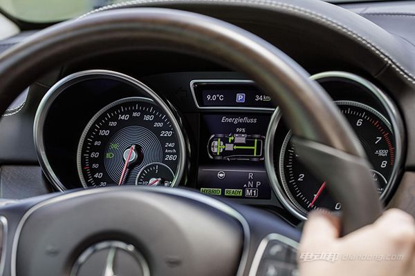奔驰GLE 500e 4MATIC的混动工况显示在仪表盘上