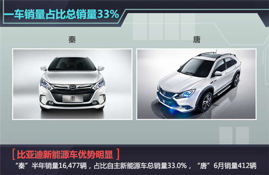 在插电混动车中最为热销的品牌是比亚迪,仅“秦”一款车型,上半年销量就高达16,477辆,占国内自主品牌新能源车销量比重达33.0%。此外比亚迪还投放了国内首款插电式混合动力SUV“唐”,6月上市后单月销量达到412台。下半年比亚迪还计划推出包括宋、元、商在内的多款插电式混动车型。