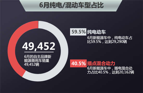 上半年,自主品牌新能源的销售车型中,纯电动车所占份额达59.5%,总销量达到29,290辆,而插电混动车销量占比40.5%,总计达到20,162辆。其中纯电动车最为热销的企业是众泰汽车,上半年销量高达92,60辆,主力车型是众泰E20(知豆H1)、云100两款低速电动车,市场占比高达18.8%。