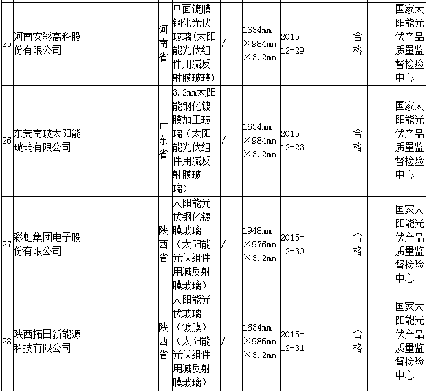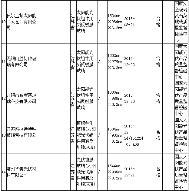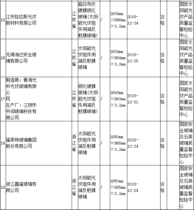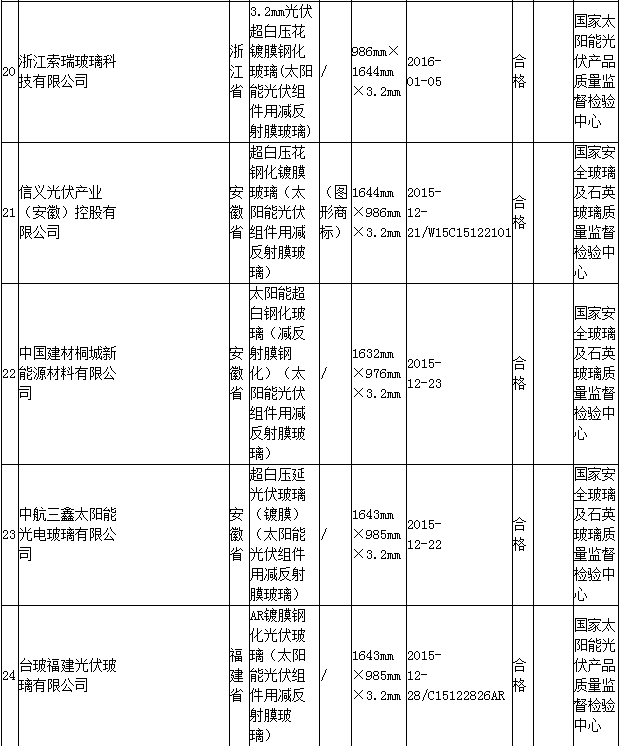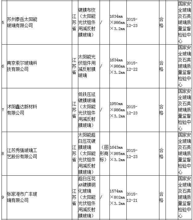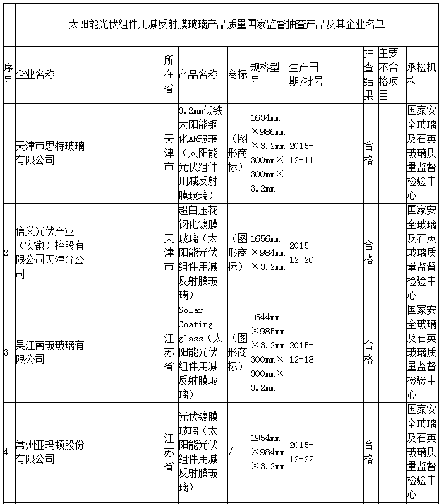 太阳能光伏组件用减反射膜玻璃产品质量国家监督抽查产品及其企业名单(合格)